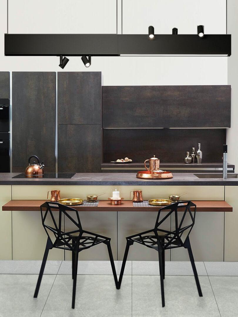 Díky promyšlenému kolejnicovému systému na stropě lze svítidla umístit kdekoliv v prostoru a snadno připojit k síti.